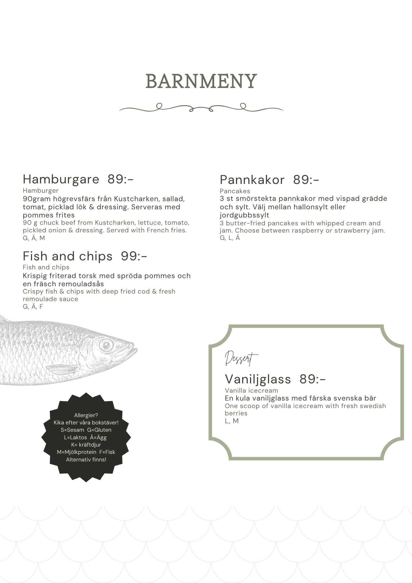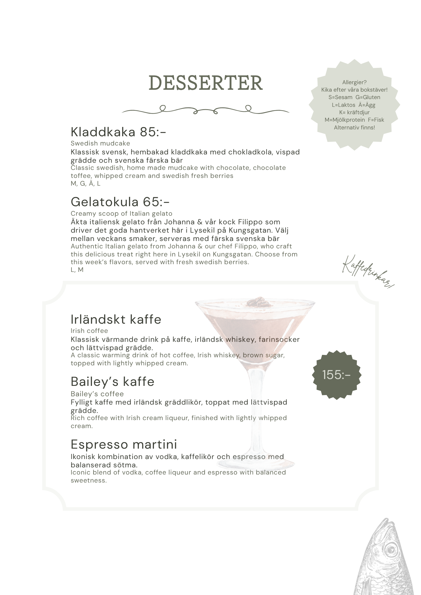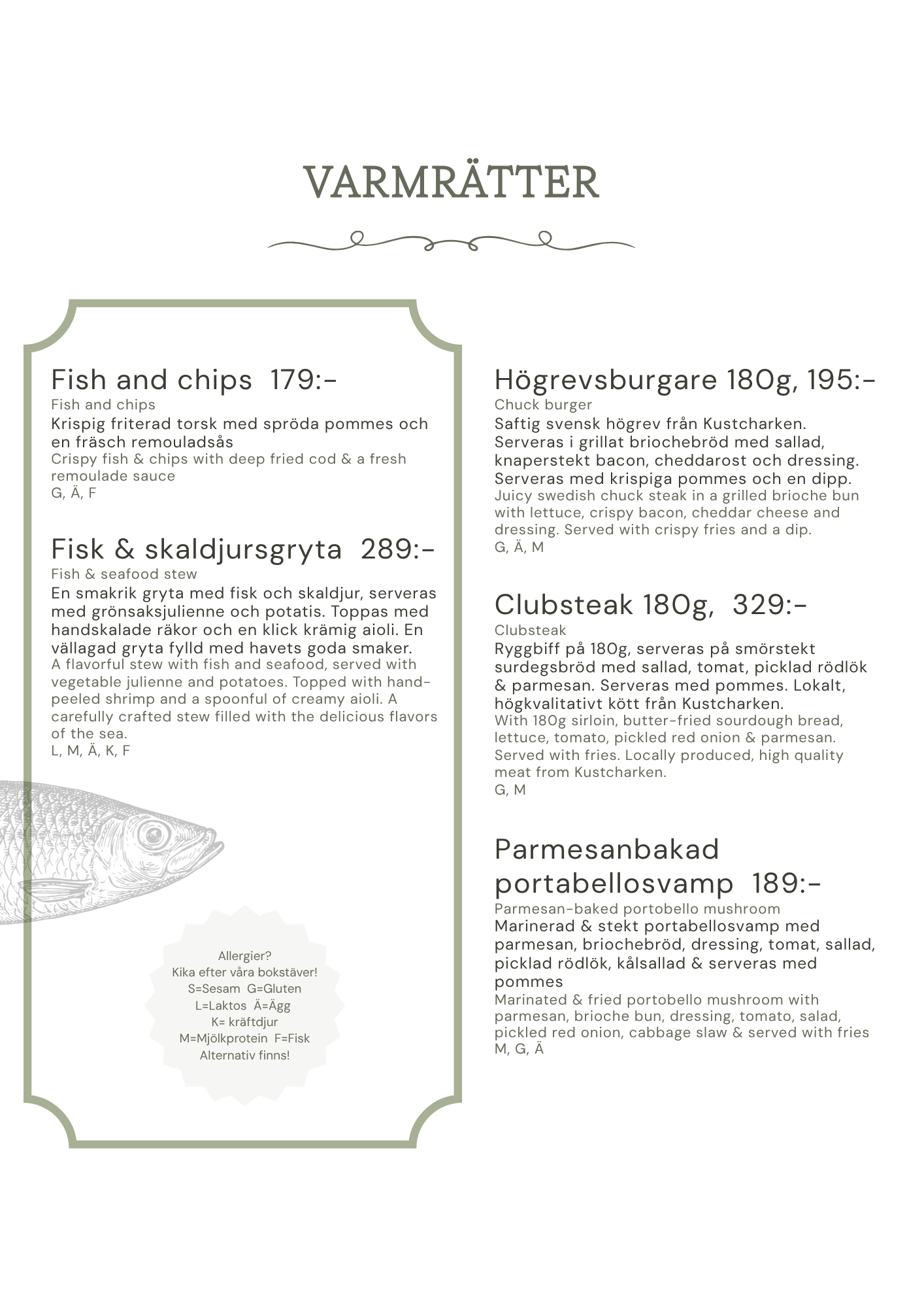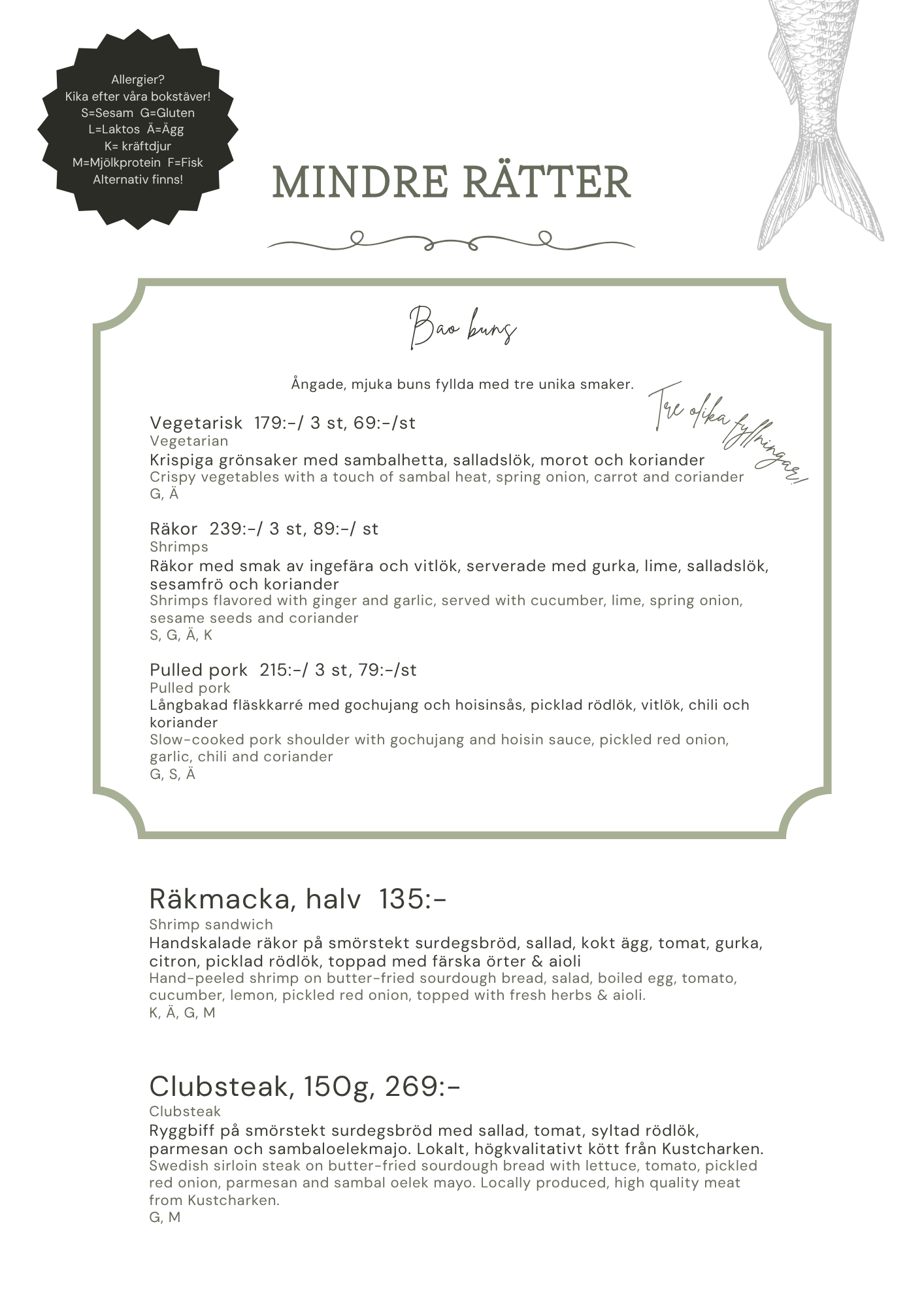 199kr inklusive ett glas vin, öl eller alkoholfritt alternativ.